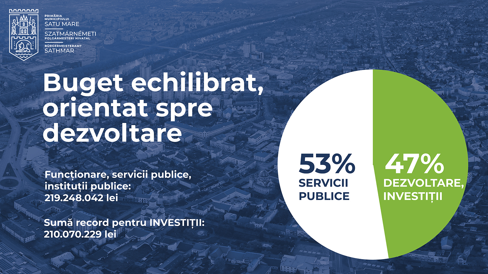 Primăria Municipiului Satu Mare va avea în acest an un buget record de investiţii de 210 milioane de lei, a anunțat luni, într-o conferinţă de presă, edilul municipiului Satu Mare.