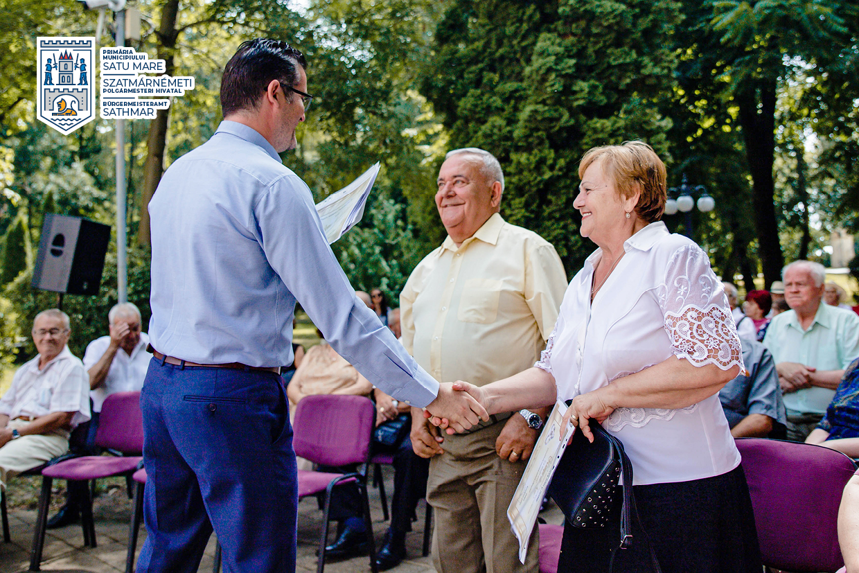 Conducerea Primăriei Municipiului Satu Mare continuă tradiția premierii celor mai longevive cupluri din municipiul Satu Mare. Miercuri, 14 iulie, în Grădina Romei, au fost felicitate 29 de cupluri care aniversează 50 de ani de căsătorie și 5 cupluri ce sărbătoresc 60 de ani de căsătorie. Primarul municipiului Satu Mare, Kereskényi Gábor, a subliniat cât de important este modelul acestor cupluri pentru comunitatea sătmăreană și pentru tinerele generații.