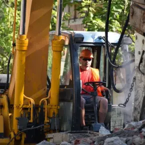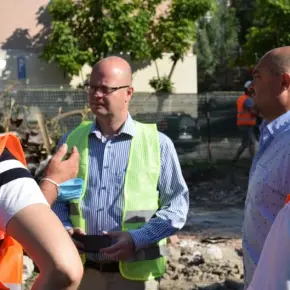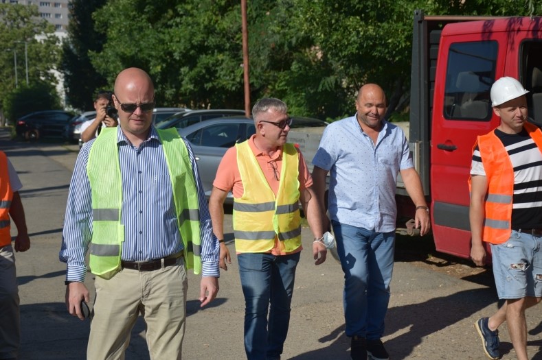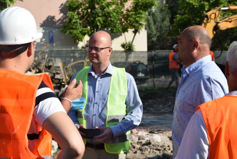 Primarul municipiului Satu Mare, Kereskényi Gábor alături de administratorul public, Maskulik Csaba au verificat astăzi organizarea șantierului de lucrări, în prezența reprezentanților firmei executante PROIECT INVEST SRL.