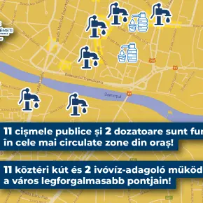 Primăria Municipiului Satu Mare și Apaserv S.A Satu Mare vin în sprijinul sătmărenilor în aceste zile caniculare. Două dozatoare de apă vor fi disponibile începând de joi, 24 iunie, pe străzile A.I Cuza și I.C. Brătianu. De asemenea au montate și sunt funcționale 11 cişmele publice în cele mai circulate zone din oraș. Astfel, sătmărenii au la dispoziție cișmelele din următoarele locații: