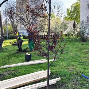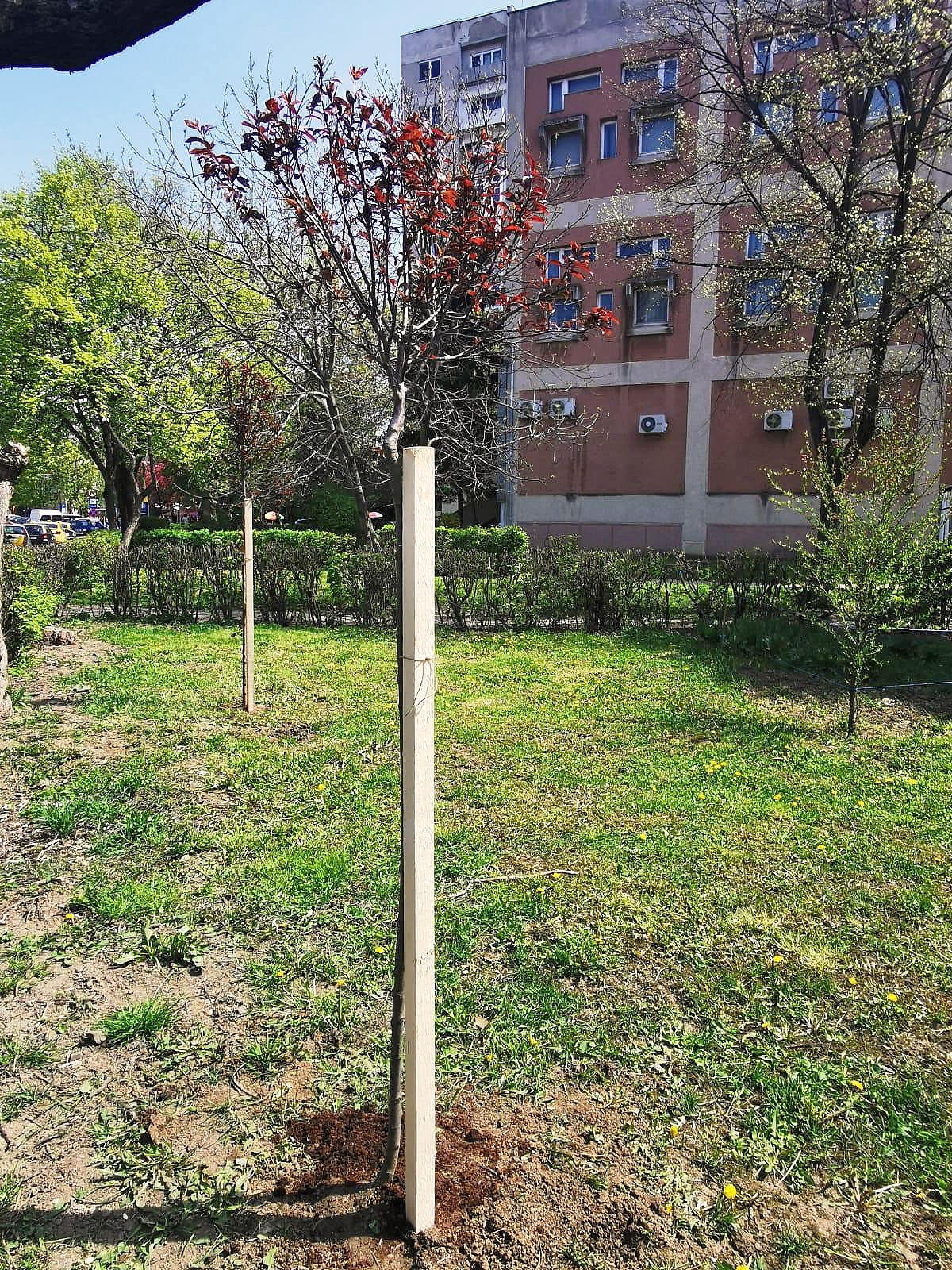 Pe str. Prahova se mai găsesc astfel de pruni ornamenatali care s-au dezvoltat frumos, motiv pentru care am ales să păstrăm același tip de arbore și în zona din fața blocurilor.