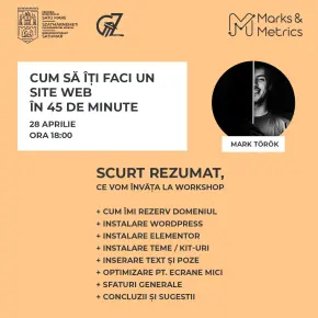 ”Cum să-mi fac un site în 45 de minute cu WordPress și Elementor?”. Acesta este tema workshopului online, organizat de Centrul Cultural G. M. Zamfirescu și Marks & Metrics, proiect care dorește să vină în sprijinul micilor întreprinzători, a PFA-urilor din Satu Mare și tuturor celor care doresc să-și lanseze afacerea în online. Prima sesiune creativă din programul de activități online va avea loc în 28 aprilie, la ora 18:00.