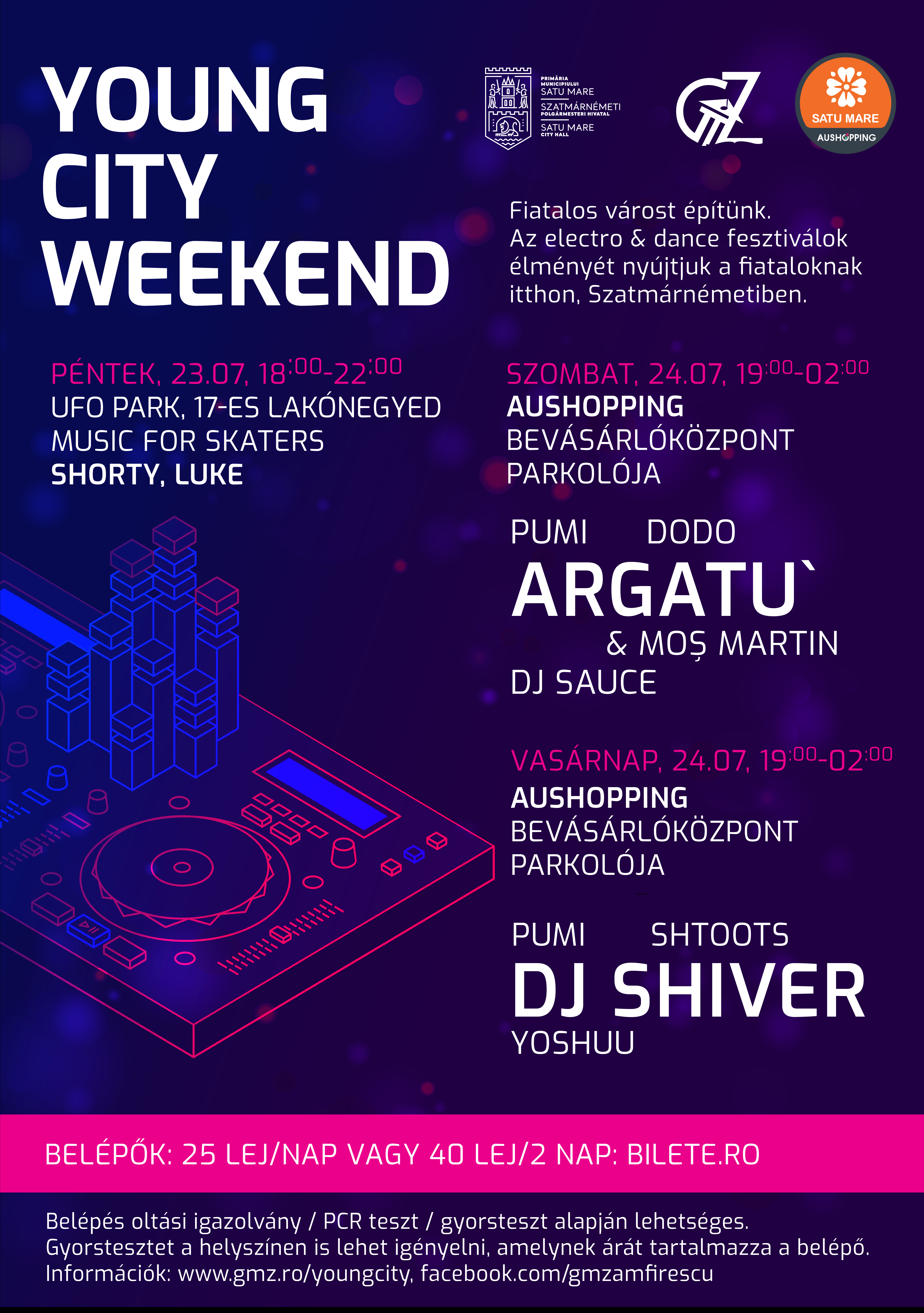 A szatmári fiatalokat arra szeretnénk ösztönözni, hogy fedezzék fel legkülönbözőbb zenei stílusokat, kultúrától és életkortól függetlenül. A szervezők, a Szatmárnémeti Polgármesteri Hivatal, a G.M Zamfirescu Kulturális Központ és az Aushopping Szatmárnémeti célja az, hogy a szatmári fiatalok az elmúlt két év legfelvillanyozóbb hétvégéjét éljék át július 23-25-e között.