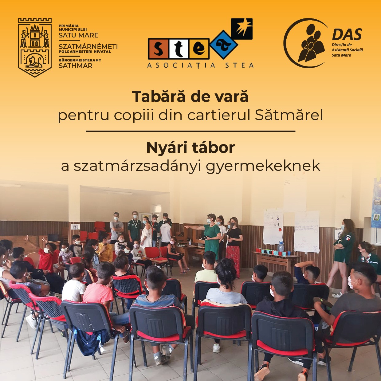 A Szatmárnémeti Szociális Igazgatóság és a STEA Egyesület közösen szervez nyári tábort azon hátrányos helyzetű, Szatmárzsadányban élő gyermekek számára, akiknek nincs lehetőségük más táborban részt venni, vagy a családdal együtt vakációzni a nyári periódusban.