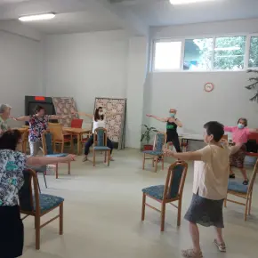 Săptămâna aceasta, în vizită la Centrul de zi pentru vârstnici a fost doamna Simona Niste, instructor internațional de bodyArt și instructor pilates, care alături de beneficiari a reușit să creeze o atmosferă revigorantă și în același timp relaxantă prin exercițiile fizice adecvate vârstei. Centrul de zi pentru vârstnici își dorește promovarea imaginii de îmbătrânire activă, menținerea și îmbunătățirea capacităților fizice și practicarea sportului în mod regulat.