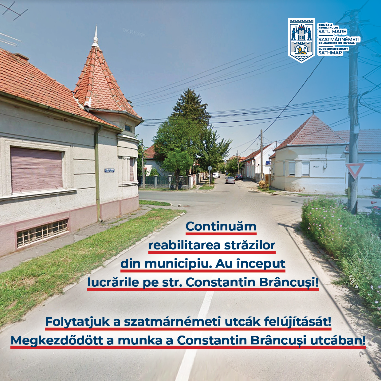Stimați sătmăreni, vă anunțăm că au început lucrările de reabilitare a carosabilului pe str. Constantin Brâncuși. Ca urmare a acestor lucrări, în următoarea perioadă vor există restricții temporare de circulație. Vă mulțumim pentru înțelegere!