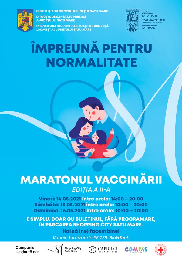 Începând de vineri sătmărenii se pot prezenta fără programare la centrul de vaccinare din parcarea Shopping City Satu Mare, pe Drumul Careiului nr. 17.
