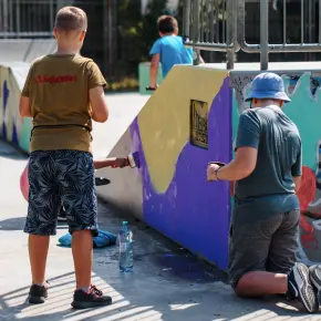 Orașul nostru devine din ce în ce mai colorat! RestArt [urban paint] festival continuă în mai multe locații din municipiu. Copiii desenează și înfrumusețează skatepark-ul și ne ajută să dăm viață spațiilor urbane. Povestim despre arta stradală și le oferim ocazia să își exprime creativitatea. În această perioadă, în Satu Mare arta urbană unește generațiile. Împreună dăm culoare orașului!