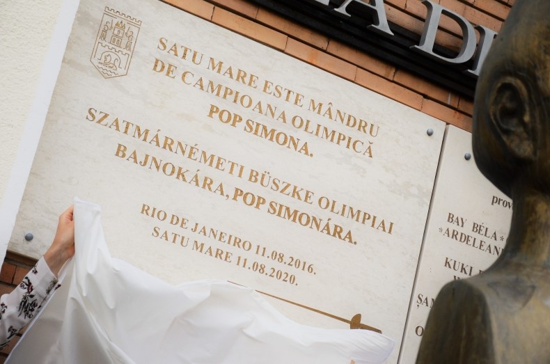 Placa dedicată campioanei olimpice Simona Pop a fost dezvelită marți, 11 august, în fața sălii de scrimă Alexandru Csipler.