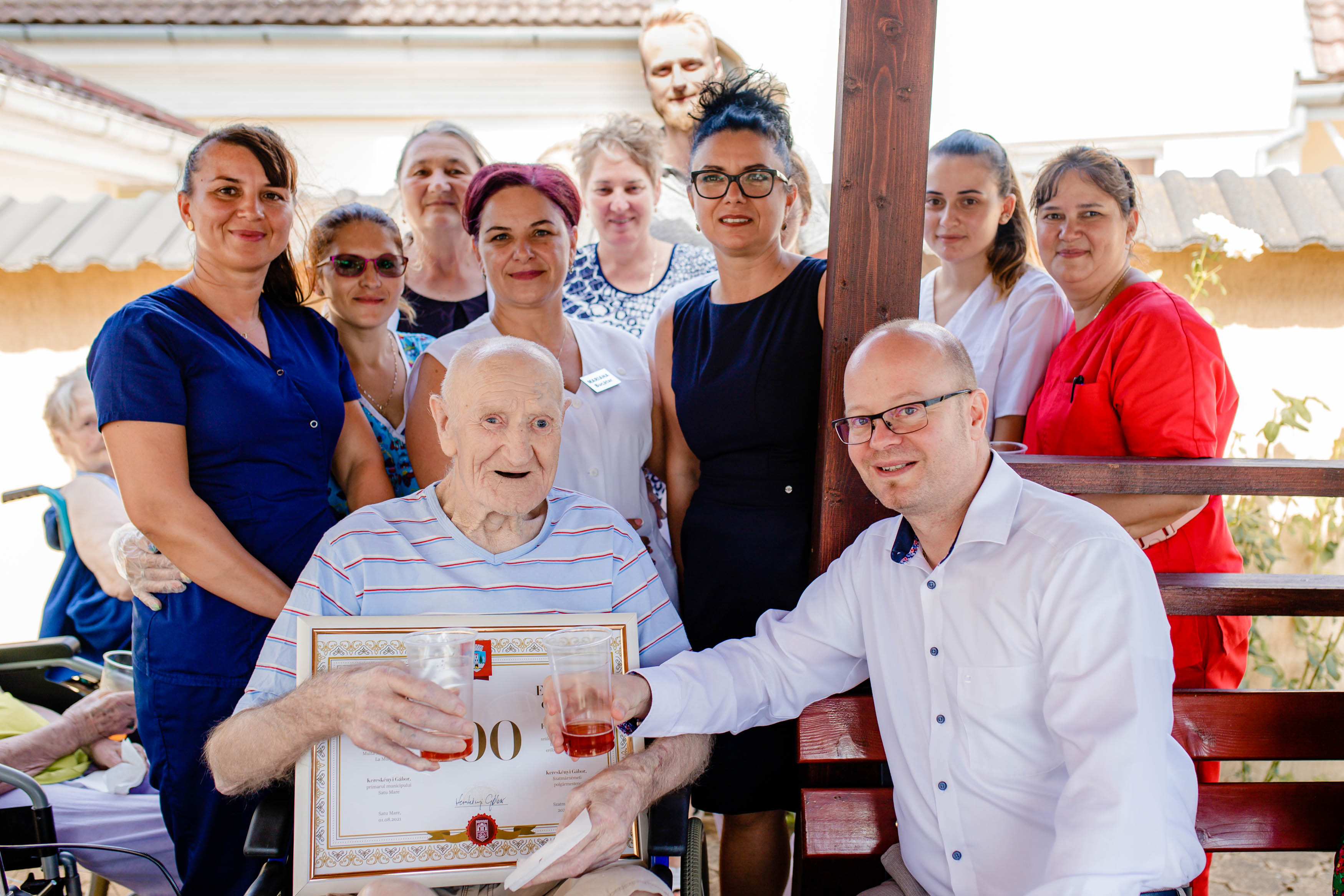 ,,Seniorii  merită tot respectul și aprecierea nostră. Am făcut azi o vizită aparte, pentru a-i felicita în numele întregii noastre comunități pe doi sătmăreni, cu prilejul aniversării de 100 de ani! Lajos Ferenczi și Elisabeta Bató sunt doi oameni care sunt un exemplu datorită contribuției pe care au avut-o la ceea ce este astăzi orașul nostru. Le doresc multă sănătate, lor și familiilor!”, a declarat primarul Kereskényi Gábor
