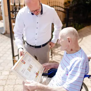 Domnul Lajos Ferenczi este în grija fiicei lui, Reizer Maria și a echipei Centrului de Rezidență Sfântul Anton, iar doamna Elisabeta Bató în grija rudelor. Amândoi susțin că secretul ,,tinereții fără bătrânețe” este să ai puterea să îți păstrezi zâmbetul, indiferent de greutăți. Pe această cale, Primăria Municipiului Satu Mare transmite mulțumiri Organizației Caritas a Diecezei Satu Mare pentru donația făcută!