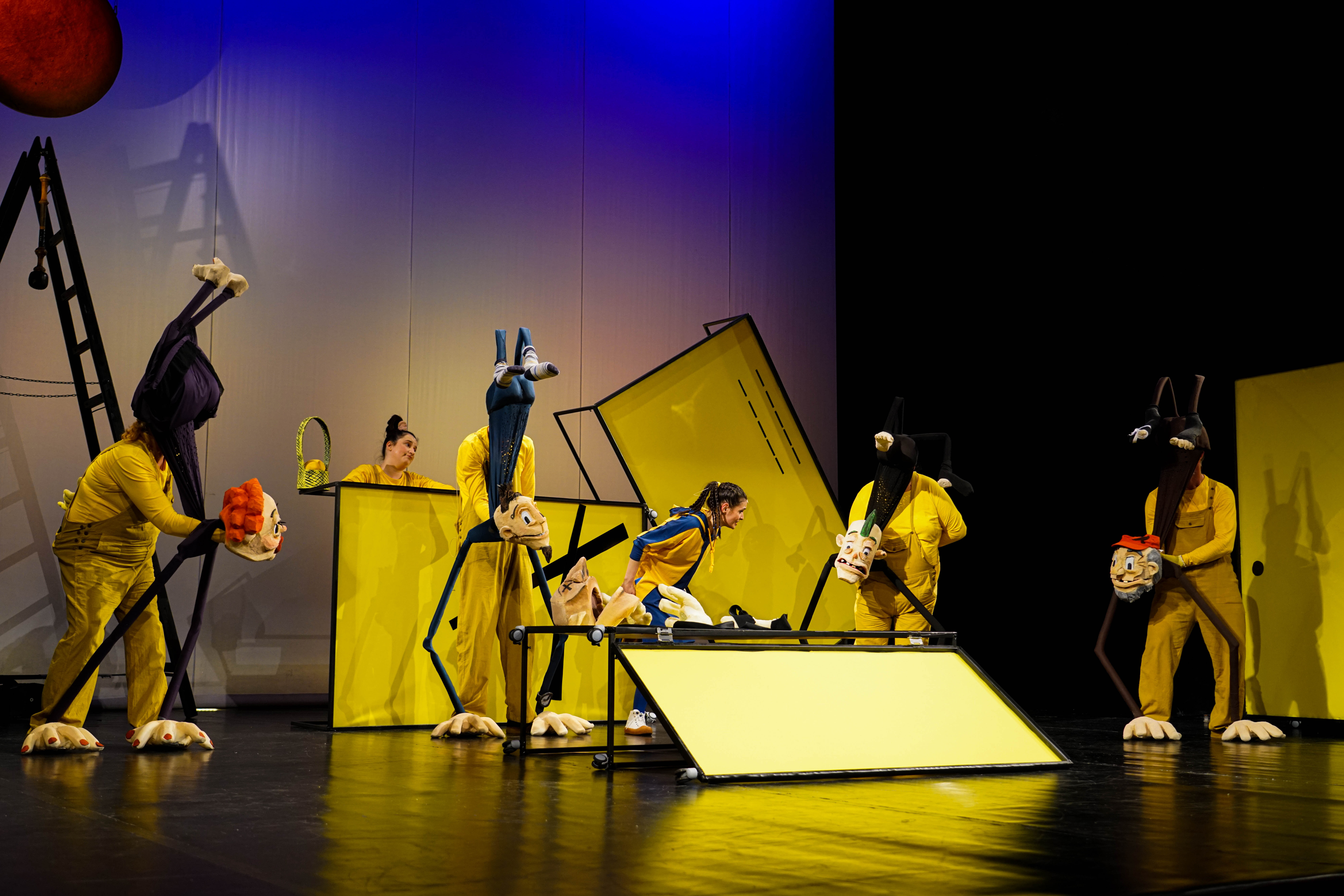„Cu susul în jos” este un spectacol care încearcă să cultive empatia și înțelegerea față de moduri de gândire diferite și poate chiar să dezvolte o abordare neagresivă a conflictului dintre generații. Din distribuție fac parte actorii: Crina Andriucă, Bianco Erdei, Carmen Frăţilă, Tibor Székely, Ciprian Vultur, Alexandra Odoroagă. Regia: Delia Gavlițchi.