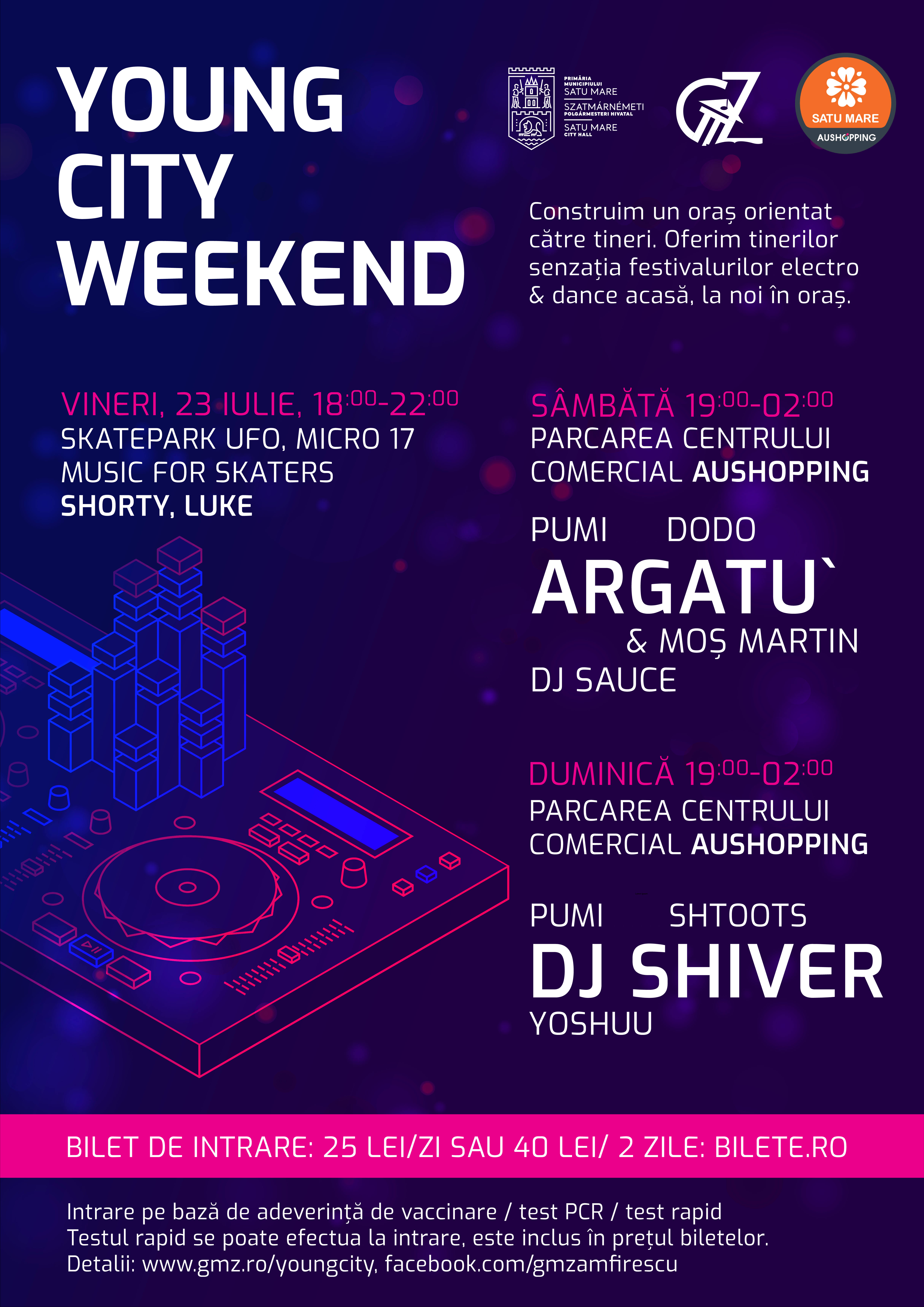 Sâmbătă și duminică, 24 și 25 iulie, evenimentele din cadrul Young City Weekend se mută în parcarea de la Aushopping, strada Careiului 77-79.