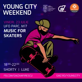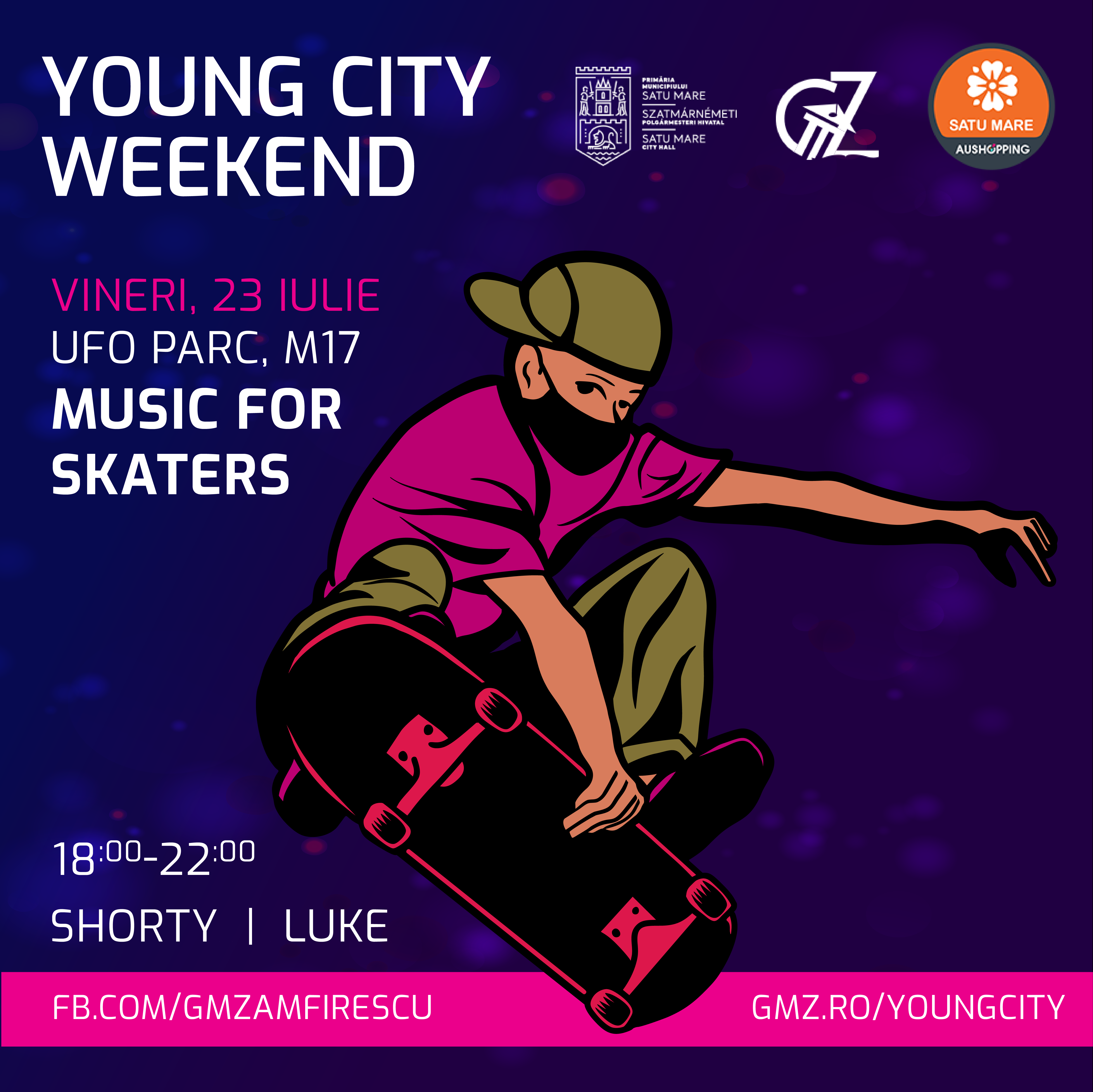 Prima zi de weekend, vineri, 23 iulie, dăm startul evenimentului în parcul UFO cu Music for Skaters: doi tineri DJ sătmăreni talentați, Shorty și Luke vor crea o atmosferă specială, de distracție, pentru practicanții de skateboard. Fiind vorba de o muzică de atmosferă, la eveniment se aplică doar restricțiile de distanțare.