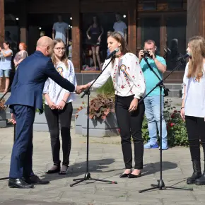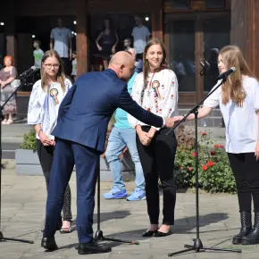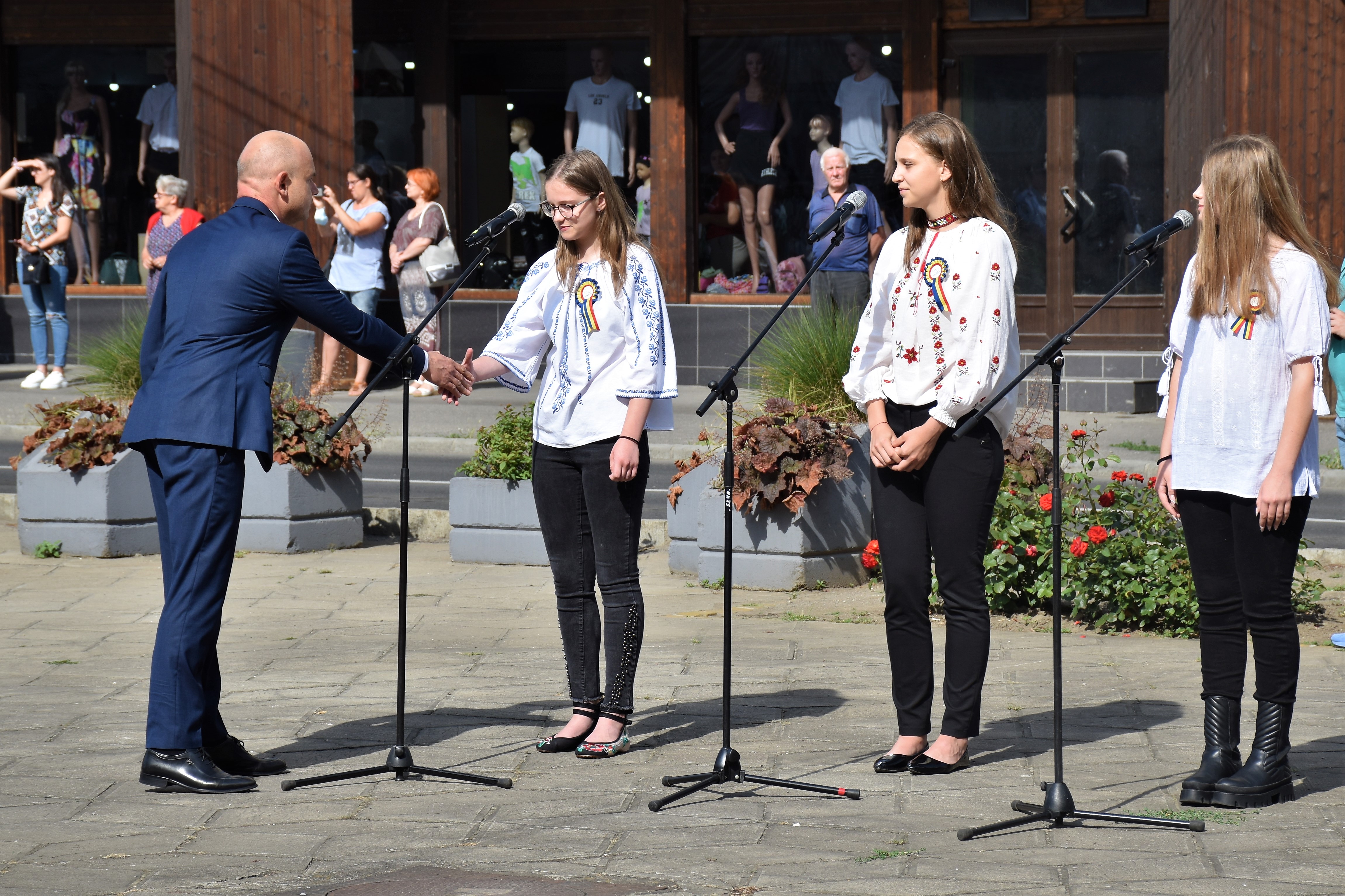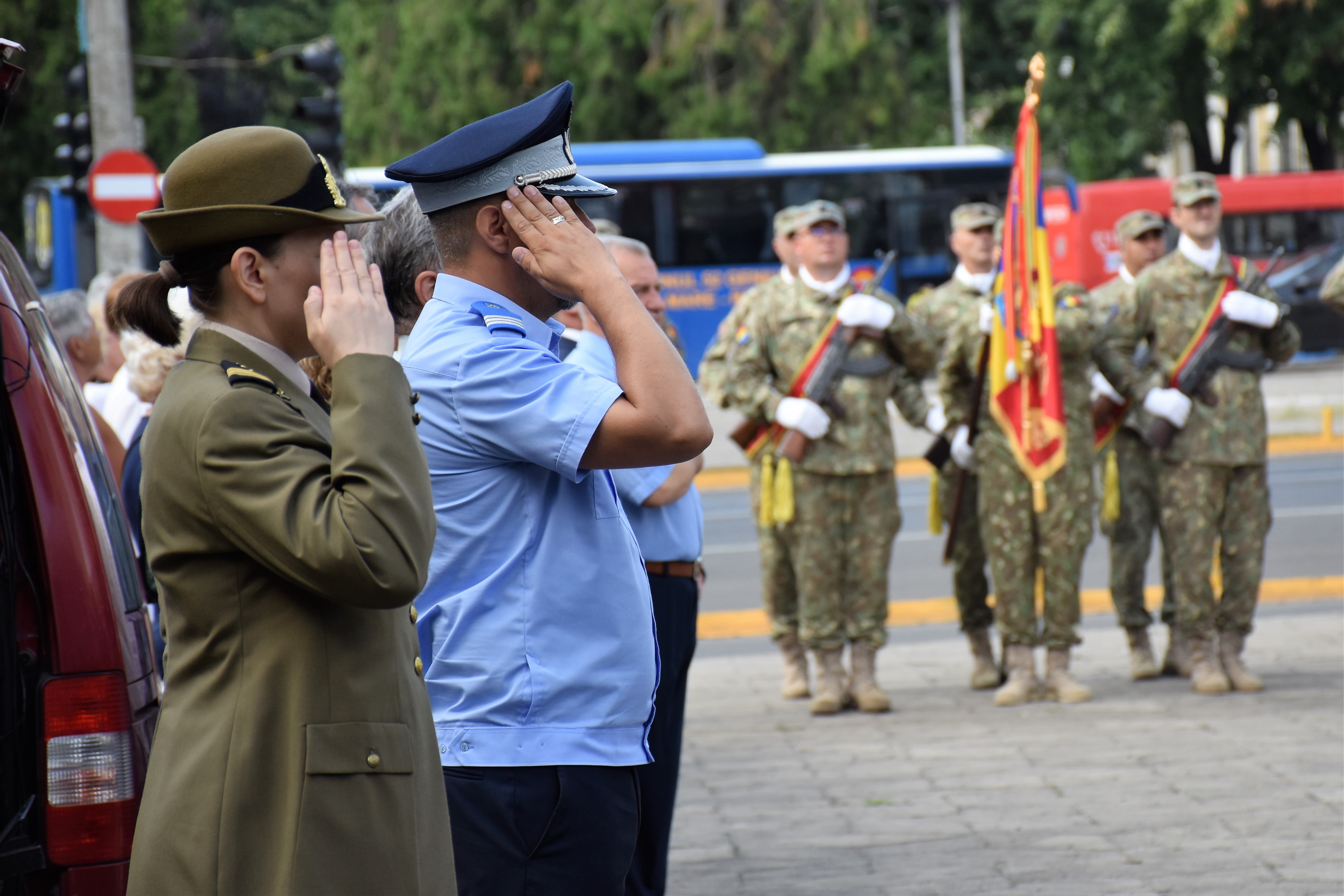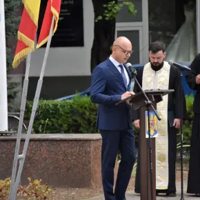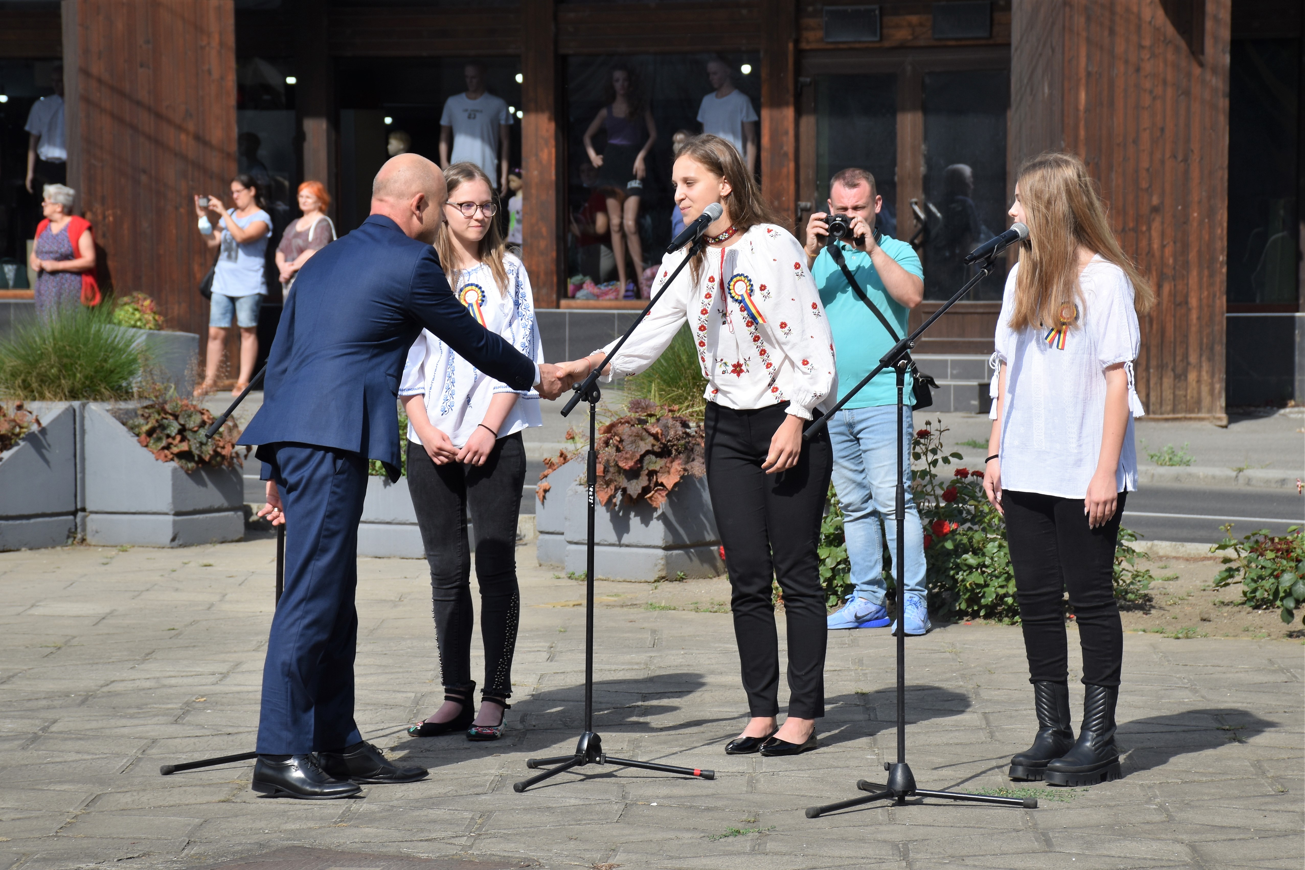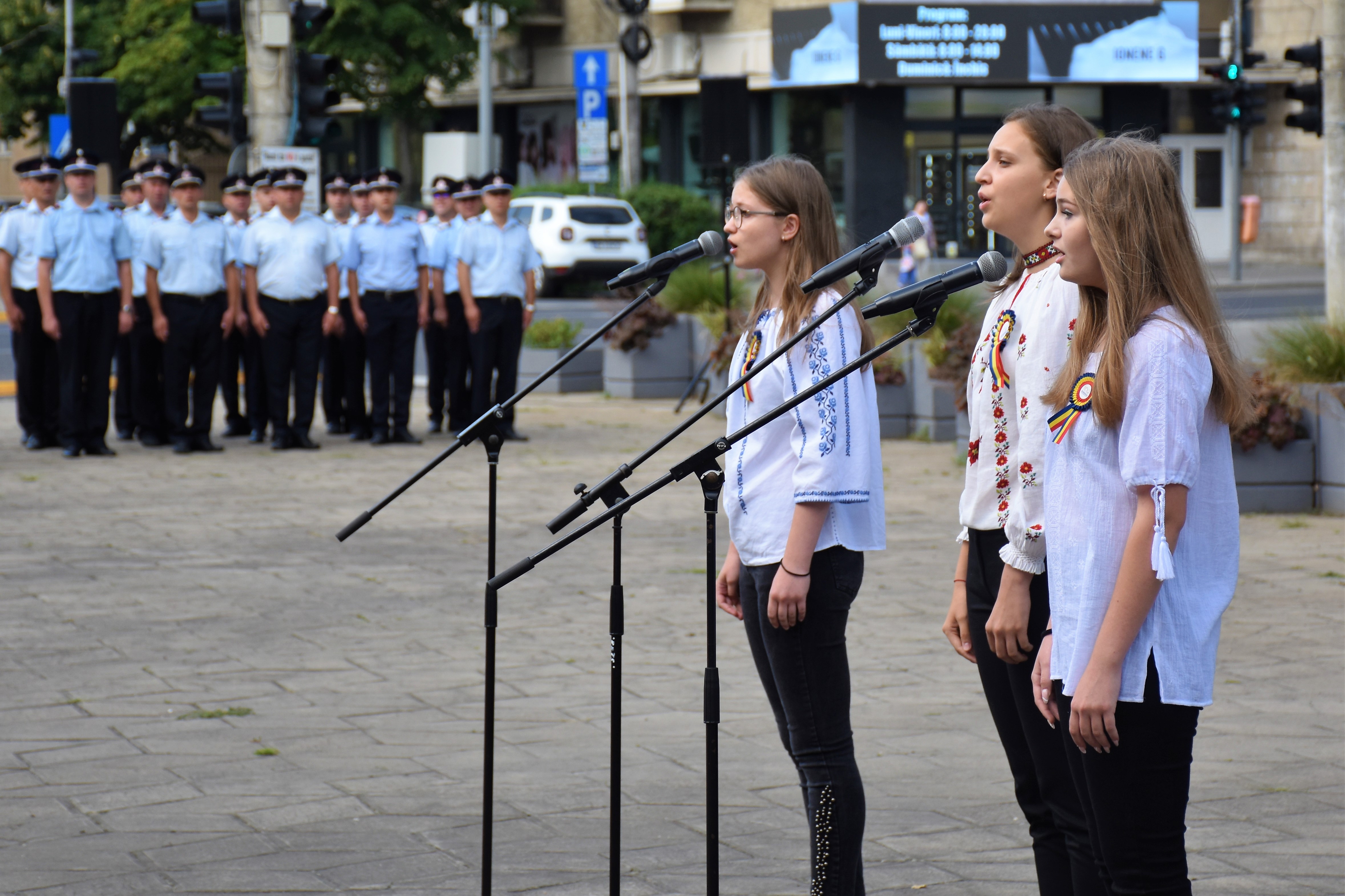 Manisfestările s-au încheiat cu intonarea Imnului Național de către trei eleve de la Școala de Arte și defilarea Gărzii de Onoare.